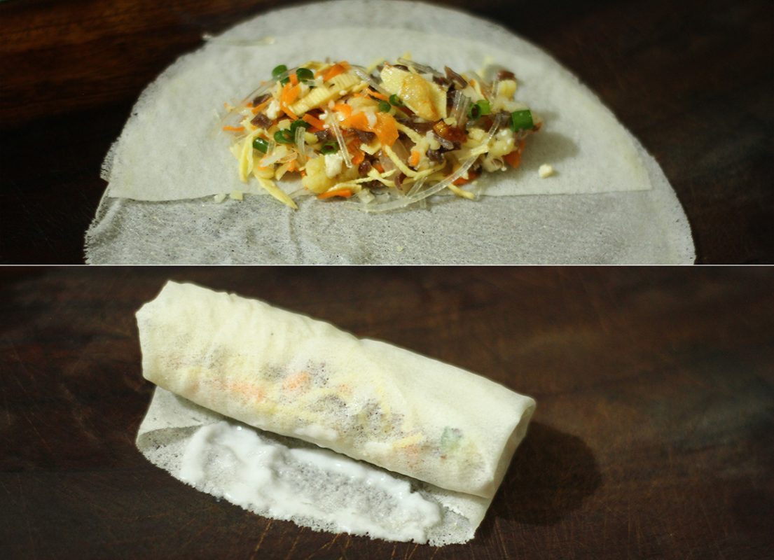 - Đảm bảo nhân ráo nước, tránh ra ẩm làm mềm bánh tráng.